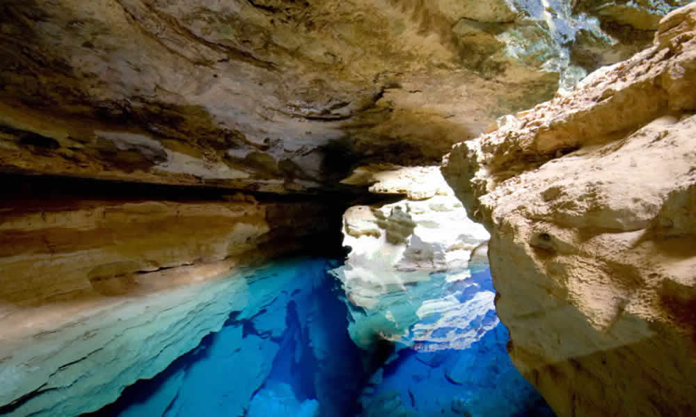 O Poço Encantado é famoso pelo fenômeno da luz azul atravessando a água em determinados períodos do ano. E, quando isso acontece, o lugar parece uma cena de cinema: a água fica tão transparente que dá a impressão de não existir. Ainda assim, o passeio costuma ser bem controlado, com visita organizada e tempo de permanência mais curto. Por isso, ele funciona muito bem para quem gosta de lugares “de olhar”, não necessariamente “de viver dentro”.